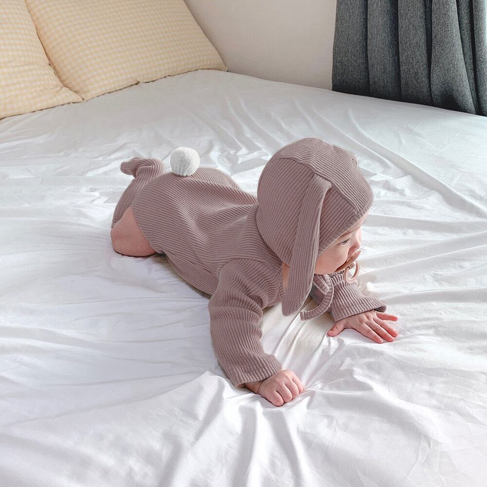 可愛らしいデザインのうさ耳&白しっぽ&靴下がセットになった3点セットロンパースが新登場しました♪ 大切なお子様をふわっと温めながら、愛らしさを引き立てるこのアイテムは、特別な日だけでなくデイリーユースにも最適です!肌触りの良い柔らかな素材を使用しており、赤ちゃんの敏感な肌にも安心してお使いいただける設計となっております。